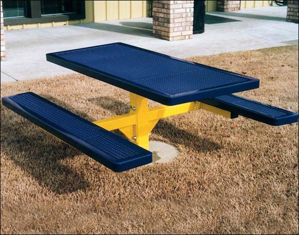 Table Top Detail of 6' Inground Mount Metal Picnic Table Shown in Mariner Blue with Yellow Frame